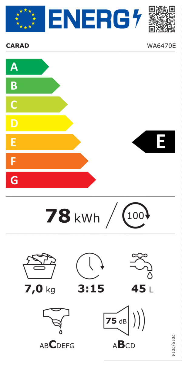 ΠΛΥΝΤΗΡΙΟ ΡΟΥΧΩΝ CARAD WA6470E ΟΡΙΖΟΝΤΙΑΣ ΦΟΡΤΩΣΗΣ ΧΩΡΗΤΙΚΟΤΗΤΑΣ 7 Kgr